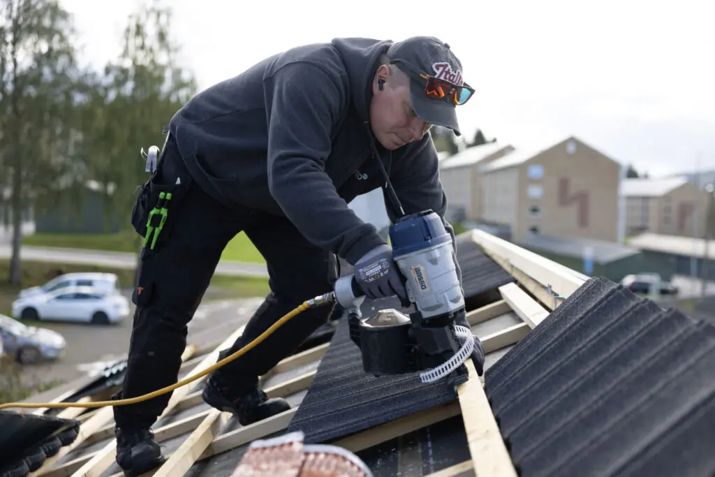 For borrettslaget Nedre Langeland i Kongsvinger forsterker vi takkonstruksjoner, utbedrer brannskiller, utbedrer piper og skifter 5500m2 med tak, fordelt over totalt 14 rekkehus.